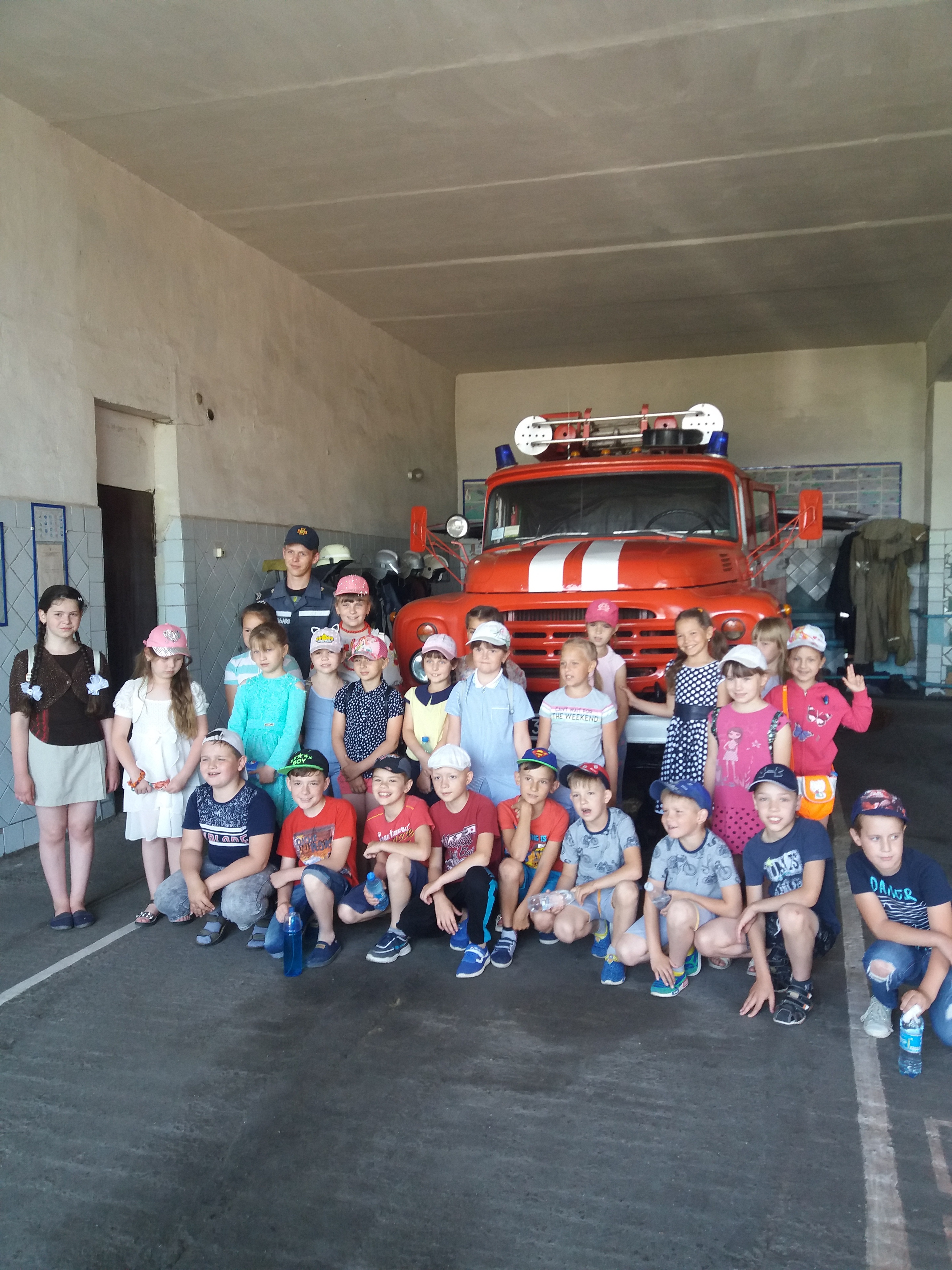 Екскурсію по пожежній частині провели господарі зустрічі, які ознайомили дітлахів з пожежною частиною та напрямками діяльності. В частині знаходиться дві пожежні машини, показали дітям різні пристрої, які використовуються під час пожежі та рятування людей з вогню, розповіли про їх призначення та використання, продемонстрували техніку перед дітьми. Бажаючим запропонували посидіти в кабіні, потриматись за кермо, приміряти на себе захисні костюми та різні обладунки, навчили дітей в'язати пожежні мотузки, продемонстрували як одягати захисні шоломи та інше. Наостанок учасники заходу фотографувались на пам’ять на фоні техніки та пожежної частини. Діти отримали ґрунтовну інформацію про професію, безліч задоволення та позитивних емоцій після проведеного заходу.
