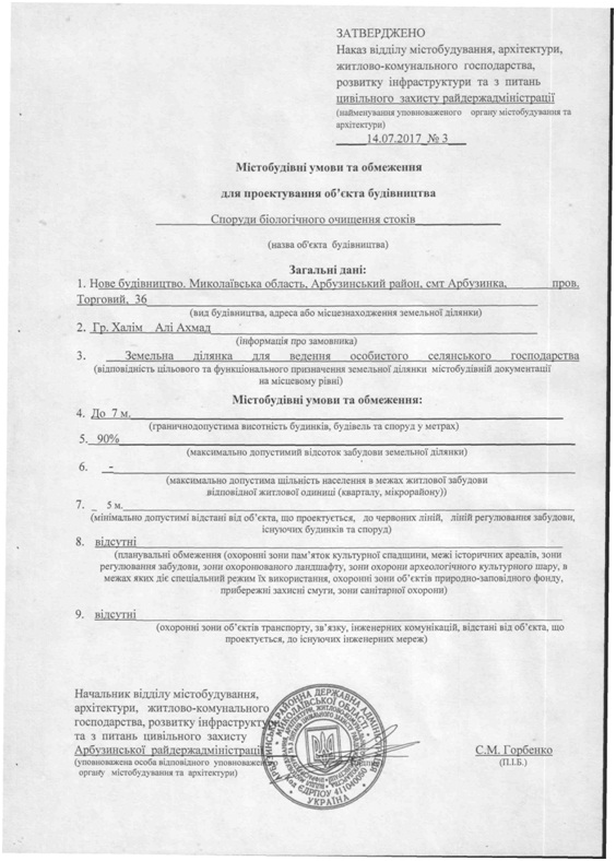 Містобудівні умови - Будівництво зерноочисного комплексу в с. Семенівка, вул. Мостова. 1-д. в межах Благодатненської сільської ради, Арбузинського району Формат: PDF | Добавлен: 23/08/2020 17:03:23 |