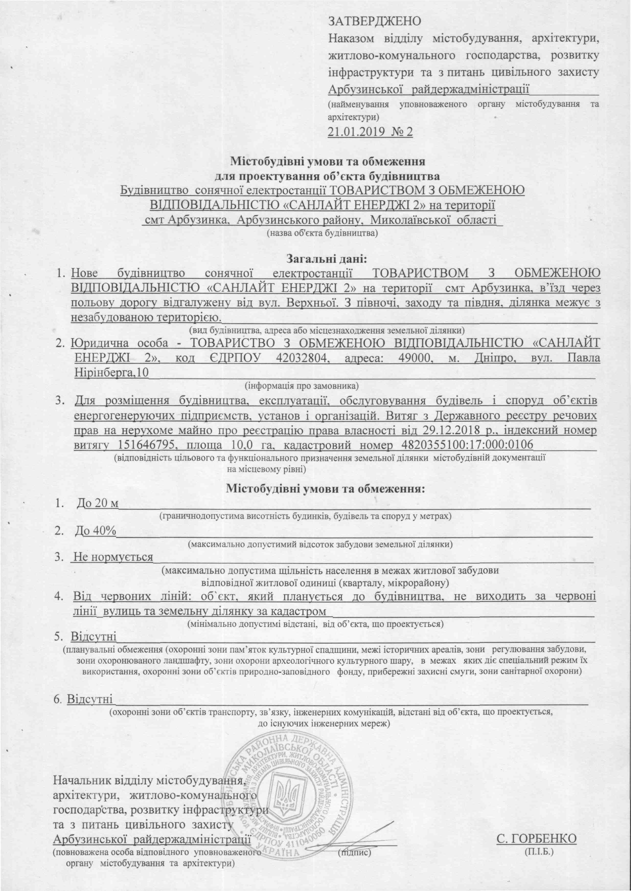 Містобудівні умови - Будівництво сонячної електростанції Формат: JPG | Добавлен: 23/08/2020 17:03:21 |